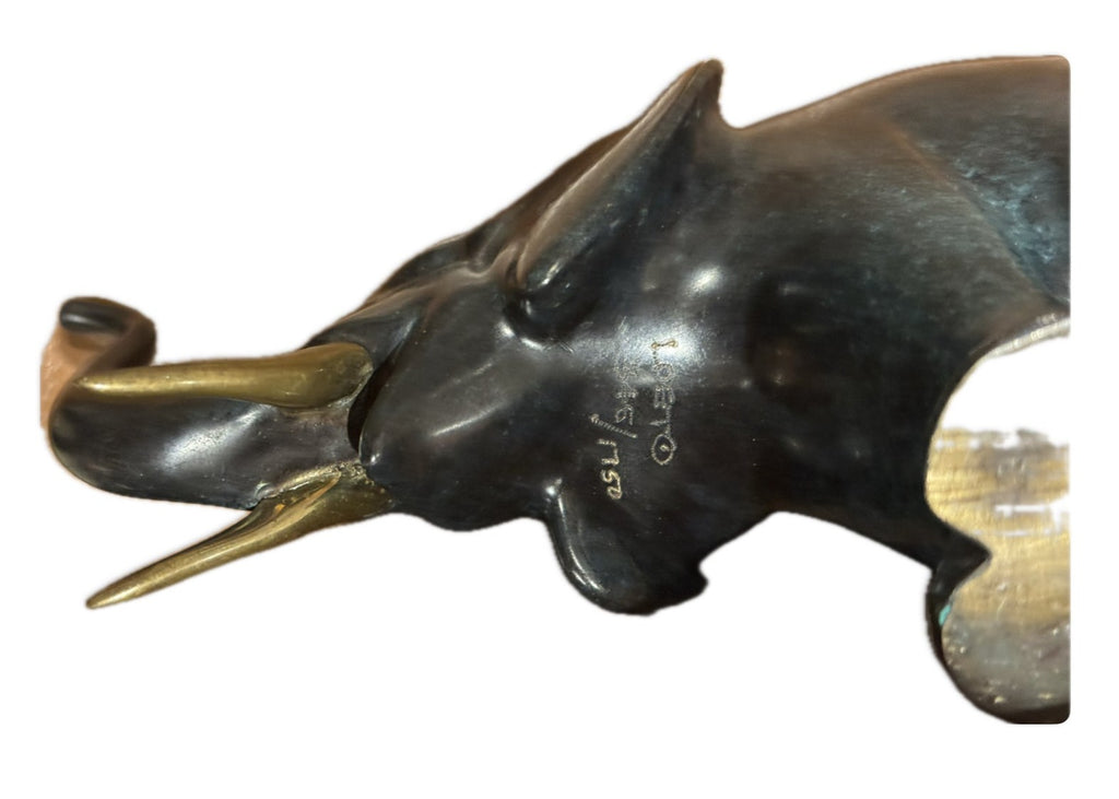 Elephant, Feeding (NO 199) is by Loet Vanderveen. It is available in an Emerald Bronze patina and is from an edition 1750. The next available is #345.  Further details are available with a specialist. Call now 303.331.8400 or request more online.