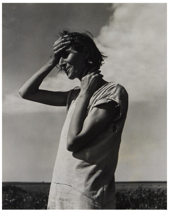 Dorothea Lange  photographed Woman of the High Plains, Texas Panhandle in 1938. It is in Excellent condition as it is a large, beautiful print. The work was printed in the 1940's or early 1950's and is a  Gelatin Silver print. The unframed print size is 12 3/4 x 10 1/8 in. (32.4 x 25.7 cm.).  It is mounted to a piece of photographic paper trimmed to the same size as the photograph.  For further details speak with a specialist at 303.331.8400 or request more online.